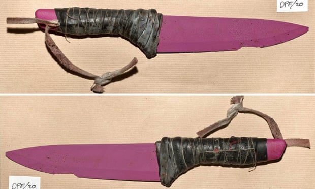 Polizei veröffentlichte Bilder von gefälschten Selbstmordgürteln aus der London Bridge Weiterlesen Die Polizei appellierte nach Informationen über die unverwechselbaren 12in rosa Küchenmesser, die eine keramische Klinge haben und den Namen "Ernesto" tragen, ein Hinweis auf das Branding, das von Lidl für seine Haushaltswaren verwendet wird. Jeder der Angreifer war mit demselben Messer bewaffnet. Sie hatten ein Londoner Londoner Haus benutzt, um ein Stück Leder zu schneiden, das sie an den Griff befestigt hatten, und dann hat jeder Angreifer ihn an sein Handgelenk gebunden, die Polizei hat gesagt.